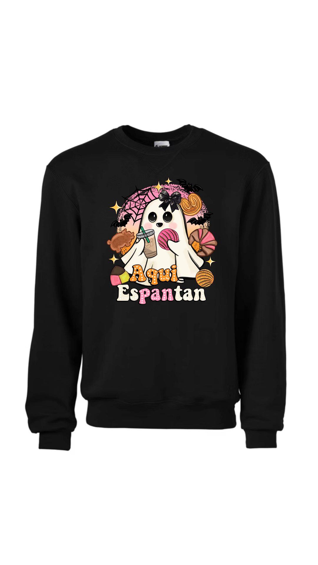The "Aquí Espantan" twist is the perfect mix of spooky and sweet, just like pan dulce with your cafecito. It’s the ultimate Halloween shirt for those who love a little ghostly fun with a warm cup of coffee! ☕🎃