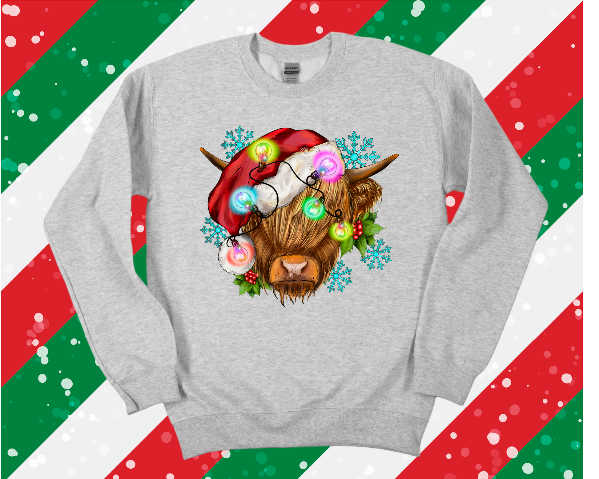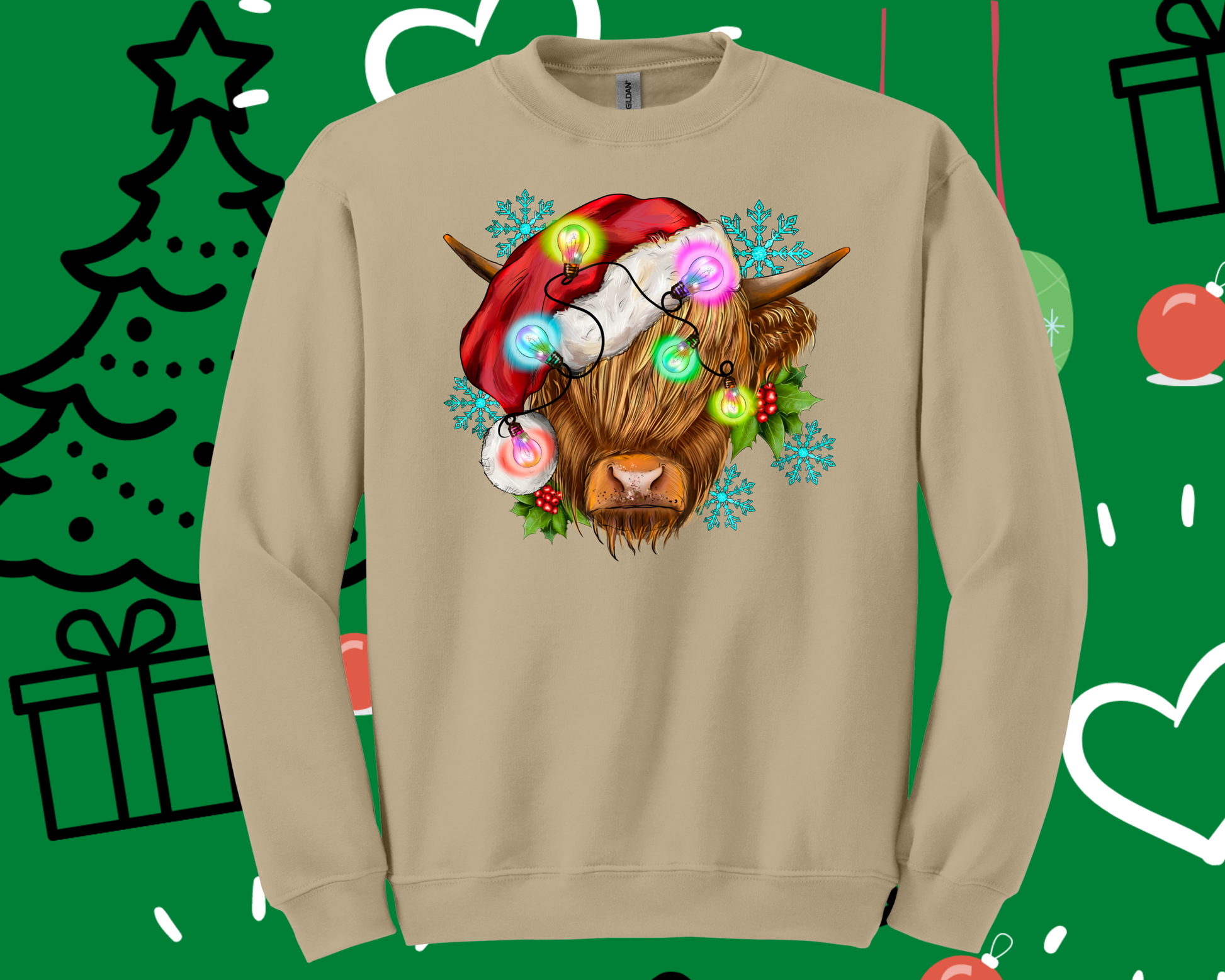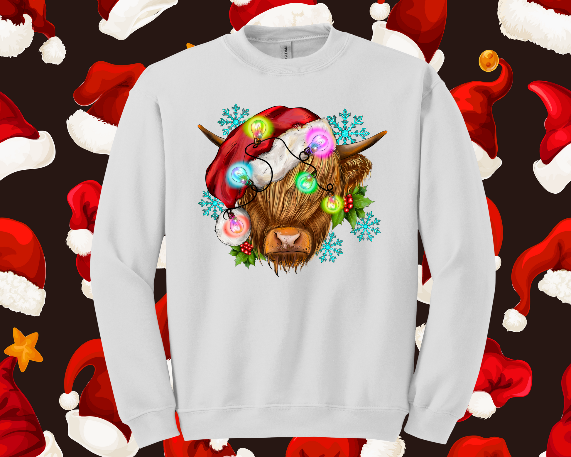 Get ready for a 'Moo-rry Christmas' with our latest tee featuring a Highland Cow decked out in a Santa hat and wrapped in Christmas lights! This shirt combines the charm of the Scottish Highlands with the magic of the holiday season. It's the ultimate cozy-meets-cute statement piece. Whether you're caroling in the countryside or sipping eggnog by the fire, this tee is udderly perfect for spreading holiday cheer. 🐄🎅🎄 #MooRryChristmas #HighlandHoliday