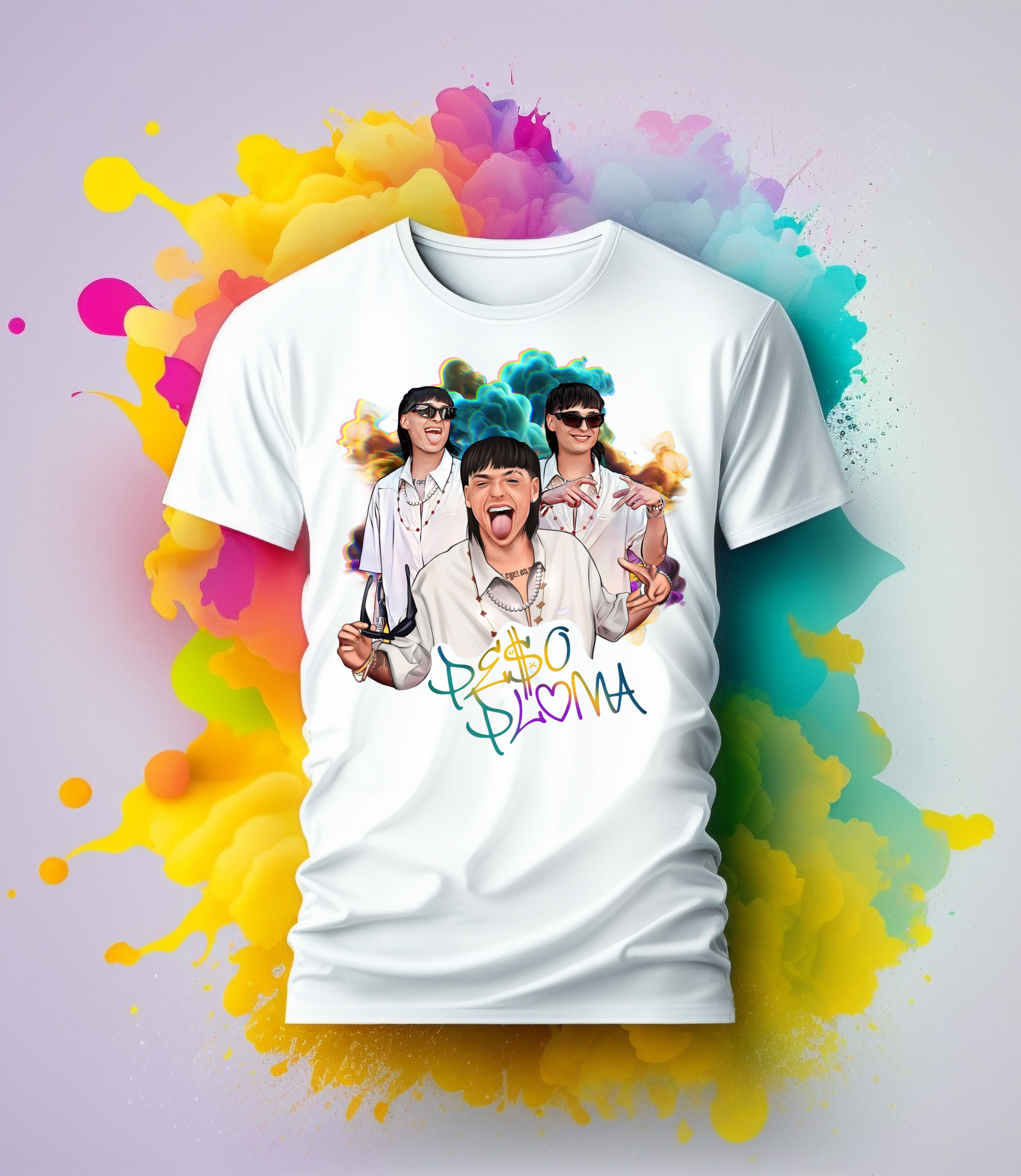 This striking tee features a bold portrait of Peso Pluma, showcasing his unique style and electrifying energy. Whether you're a die-hard fan of his music or simply love supporting emerging artists, this t-shirt is the perfect way to show your appreciation and join the movement.